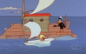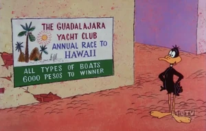 The Guadalajara Yacht Club is awarding six thousand pesos to the winner of its annual race to Hawaii. Daffy and Speedy both decide to enter, though Daffy makes it clear he's in it only for the prize money, his greed once more showing. Daffy builds himself a raft, while Speedy just rigs a sail to a bathtub. Daffy sails to an early lead following the starting gun, singing Aloha 'Oe as he believes he has victory in the bag, but when Speedy passes, Daffy pulls the drain plug and sinks the tub. Speedy returns on a foot-powered paddle-wheeler, but Daffy throws him an anchor and smashes his craft. The mouse flies back on a helium balloon and lands on Daffy's raft. He says they should just work together and split the prize money, but the duck disagrees, as Daffy's greed refuses to share the prize money with anyone. Daffy gives chase, but Speedy knocks him off the raft and he sinks to the seafloor. Daffy returns and ties an anvil to Speedy's leg, but as he drops it, Speedy unties it and ties it to Daffy and he sinks to the seafloor again. Now fed up, Daffy chases Speedy once more, trying to wallop him with a baseball bat, but gets stuck in a porthole when Speedy tries to disarm him of his weapon. Speedy beats him on his bottom with the bat until he agrees to be partners with Speedy and split the prize money an even 50/50. As the other yachts approach, Speedy frees Daffy and they attempt to stay ahead of the other boats. Speedy call for more steam, but Daffy, propelling them with his feet, says the only way he could go faster was if a shark was chasing them. Speedy sits back and plays Hula Lou on his ukulele as the predictable happens.