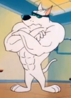 Arnold is a white, muscular, male pit bull with a pair of black sunglasses, parodying Arnold Schwarzenegger. He is one of the few characters who do not attend Acme Looniversity. Arnold is shown as having various jobs, including lifeguard, doorman, zoo-keeper, security guard, bouncer, and gym owner. His love interest is another white muscular pit bull interestingly named "Arnolda".