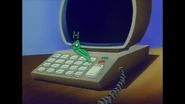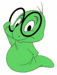 Bookworm is a green male larva with large glasses. He is based on The Bookworm companion of Sniffles from "Sniffles and the Bookworm", "The Egg Collector" and "Toy Trouble". He works at the Acme Looniversity library, and is well-read, as well as proficient on the computer. In some scenes, he is pursued by Sweetie. Bookworm does not speak in the series.