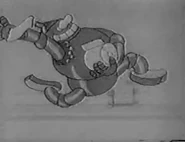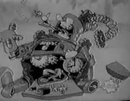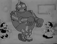 Honey, through quick thinking, uses her perfume to calm down the mechanical monster, and Bosko keeps him calm by playing the piano. However, the second he stops, the robot begins to pursue him once more. Honey tries to stop him by playing a song on the record player, but due to it skipping and getting stuck on the same part, this doesn't stop the metal menace for long.