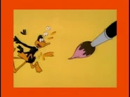 Having enough, Daffy arrives with a hair shaver, threatening to cut off the brush when it appears again. However, when he uses it, the animator just retreats and the shaver backfires on Daffy, defeathering him. Asking the animator to cover him, the animator paints an Easter egg over Daffy, trapping him inside. Additionally, it paints a door stating to not open the egg until next Easter. When Daffy tries to exit, he sees the animator's brush threatening him, prompting Daffy to hide in the egg, ending the special.