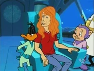 Dave Mustaine is an American musician. He is best known as the founder, guitarist, and lead singer of the American thrash metal band Megadeth. He was inducted into the Duck Dodgers universe and became an ally of Daffy Duck. His first appearance was in the episode "In Space, No One Can Hear You Rock" of the third season.