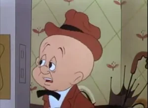 - Some syndicated versions cut out the part where Elmer notices that his staircase is missing as he prepares to go upstairs to take an "aspwiwin".[1]