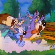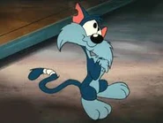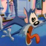 Furrball usually lives in a cardboard box in a back alley or as an unwilling pet of Elmyra Duff (in spite of the latter, he was absent from the spin-off Pinky, Elmyra, & The Brain). Unlike most of the other characters, he does not speak and is a typical pet character. Furrball spends much of his time futilely trying to eat Sweetie Bird, a pink canary; and Li'l Sneezer, a baby mouse with many allergies and hurricane-force sneezes. However, there has been one occasion where Furrball gets the last laugh on Sweetie when he had Arnold the Pit Bull to be hypnotized to chase her after recovering from the hypnosis she put him under. As the beginning indicates, Furrball is unlucky, emphasized with him being unexpectedly squished into the dirt by a falling piano. Furrball has also proven to be one of the most versatile characters on the entire show. Some of his many misadventures include getting a pair of enhanced 3-D glasses glued to his head, being hypnotized into trying to eat Arnold the Pit Bull for supper, becoming the host of a family of singing Italian fleas, being amorously pursued by Fifi La Fume after involuntarily winding up with a white stripe down his back, and being chased by the temporarily transformed Sweetie, a large, carnivorous, evil-eyed, feathered Mr. Hyde/Dr. Frankenstein monster who wants to eat Furrball (a reference to the Sylvester and Tweety cartoon "Hyde and Go Tweet"). Furrball also has a bad encounter with Byron Basset, who tries to prevent Furrball from trying to eat some baby birds whom he's protecting. Usually, though, the two of them are seen as living peacefully together, not paying much attention to each other and minding their own business. Although several appearances compare him to Sylvester, there were a few cartoons that cast him in a more sympathetic light. In these appearances, Furball is an abandoned alley cat, constantly looking for a home. The shorts would depict his misadventures in this goal, such as being mistaken for a dog by a blind couple; situations that were humorous, but also gathered sympathy for the character. He was a lonely cat against the world, but never gave up hope, much like legendary actor Charlie Chaplin. As Furrball hardly ever spoke throughout the show, his typical cat sounds are provided by Frank Welker. However, it is revealed that he speaks in three episodes. In the episode Duck Trek (in which Furrball played a spoof of Star Trek's Leonard McCoy), he was voiced by Rob Paulsen (actually, he was lip-syncing). In the episode Buster and the Wolverine (a spoof of the classic musical children's story Peter and the Wolf), it is revealed that Furrball is voiced by his regular voice actor, Frank Welker. In the episode Hare Today, Gone Tomorrow, he speaks precisely one word ("years," referencing how long he has been held captive by Elmyra; of course, he's exaggerating), with his voice again being provided by Welker. At the end of one episode after he and Dizzy Devil expose the Perfecto Prep students' cheating at a baseball game, they both said the following sentence at a victory celebration: "We love baseball." Through the majority of the show, Furrball is mute. Furrball's end tag credit is him roaring at the screen like a lion (a reference to MGM's Leo the Lion), before covering his mouth, thinking he might have scared the viewer(s), and apologizing with a soft, remorseful meow. Furrball made a cameo appearance in the Animaniacs short "Home on De-Nile", where Cleopatra called him the worst cat of all. In "Looniversity", Furrball is shown to be a full time student. Similar to his early appearances, Furrball actually speaks. In this case, he has a New York accent.