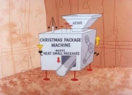 - Now, the Coyote uses an Acme Christmas Packaging Machine. He puts it in a pit with a sign that says "DETOUR". The Coyote snickers gleefully, but Road Runner, as expected, pops up behind the coyote and beeps. The startled Coyote leaps in the air and into the Christmas Packaging Machine. The result is a neatly packaged Wile E. Coyote. Humiliated, the boxed Coyote tiptoes off the screen.