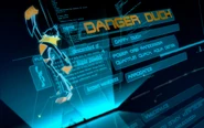 When all of the Loonatics' powers are stolen by Sypher, Tech constructs six unique exosuits that are designed to replicate and defect their individual powers. Ace's exosuit has Laser Goggles. Lexi's exosuit has a Supersonic Scream to mess up Sypher's ultra-sensitive hearing. Danger Duck's exosuit has "jellybeans" that randomly change constantly (when one hit Sypher's face, it turned into tar). Tech's exosuit has Electromagnetic Palms. Rev's exosuit has Speed Accelerator Technology. Slam's exosuit has Circular Jets, so he can once again spin into a Tasmanian Tornado. All the Exosuits are colored blue in Sypher, red in Acmegeddon Part II, and black in The Fall of Blanc, Part I and In Search of Tweetums, Part II.