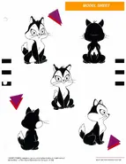 Pussyfoot, in contrast, is an extremely cute kitten to whom Marc Anthony is utterly devoted. Chuck Jones has discussed the efforts to maximize the kitten's adorableness. She has black fur with a white face and body, big blue eyes, and a white tip on her fluffy tail.