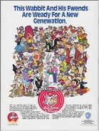 Merrie Melodies Starring Bugs Bunny & Friends is a compilation show that first ran in syndication from 1990 to 1992, then moved to Fox Kids starting in 1992.[1] Each half-hour episode ran three classic Warner Bros. cartoons. In the syndicated version, some episodes included a "Hip Clip", which was a snippet from a classic WB cartoon used to fill out the needed 22-minute (without commercials) runtime. There was oftentimes a scene taken from a cartoon that was otherwise not shown because of content issues.