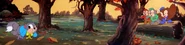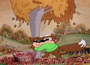 The squirrel is out of luck and now out of the entire supply of winter nuts. The snow starts to fall and the foolish squirrel heads home with no nuts and no luck in telling his father the truth. So, as he enters his home he makes up a lie and tells his father that he was robbed by bandits, jumped and badly attacked by them. But his lying ends very quickly as he discovers that the stranger who won the nuts from him was none other than his own father, who did it to teach his gambling son a lesson. The lesson, however, does not work. When his father is about to give his son ten lashes, he tells his father "I'll flip you for it, double or nothing". The foolish squirrel's end is heavily paddled.