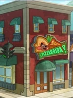 Pizzarriba! is a pizza restaurant owned by Speedy Gonzales in The Looney Tunes Show.