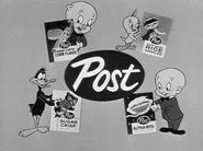 Post Holdings, Inc. (formerly Post Cereals and previously Postum Cereals) is an American consumer goods holding company that operates in the center-of-the-store, active nutrition and private label food categories. It was an original sponsor of The Bugs Bunny Show.