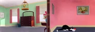 Sylvester then sneaks into Tweety's room and tries to get him in his cage; this backfires and he is knocked out by the spring-loaded cage and is dragged back to his room by Tweety. Sylvester then phones Tweety that his owner has a surprise for him; Tweety goes downstairs to receive it, but instead goes down Sylvester's throat, returning with a mouse from the time of Thomas Jefferson, explaining he is dead. The chase then goes outside, and into the room of Hector (how his owner got him past the doorman is unknown).