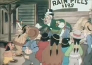 An Indian reservation is experiencing the worst drought in a decade. The tribal chief enlists the help of a rainmaker. The chief's son happens upon (and buys) a set of weather pills that can bring rain, ice, lightning, earthquakes, and other natural phenomena. The rainmaker gets upset as the little boy brings no water to the barrel and throws the pills away, which other Natives and animals eat. After seeing the effects the pills cause, the rainmaker rescues the rain pill from a vulture, and the storm starts. The chief and the rainmaker shake hands before the rain suddenly stops. The chief angrily stalks him, but the rain resumes, and they return to shaking hands.