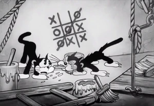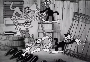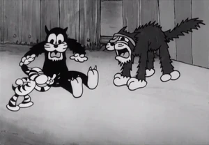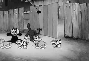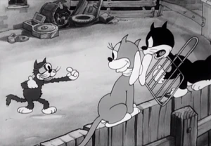 It's the middle of the night, and everyone's asleep except for the girl house cat and boy alley cats on the fence competing for her attentions. A bull and three cows from ad posters on the fence sing "Sittin' on a Backyard Fence" and a cat band, using junk instruments play. Two boy cats, one drunk on catnip, fight each other over the girl, and get chased and knocked out by a dog. The girl cat leaves with another male cat, followed by kittens that are obviously theirs. The two fighting cats then shake hands before fainting.
