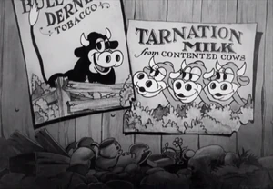 - The "Tarnation" ad is a reference to Carnation Evaporated Milk, and borrows the company's slogan "from Contented Cows".