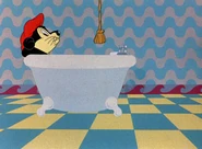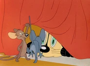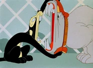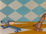 - Hubie and Bertie's design looks slightly different from later shorts to follow: in this one, both of them look less anthropomorphic and more like "realistic" mice and notably lacking visible buck teeth from their elongated upper jaws, similar in vein to the unnamed grey mouse from Friz Freleng's "The Fifth-Column Mouse" released earlier that year. Both Hubie and Bertie would later be redesigned to look more anthropomorphic and cartoonish with bigger eyes, larger noses, longer upper jaws and with visible buck teeth on one of them in later appearances, though their respective fur colors would eventually swap starting with House Hunting Mice.