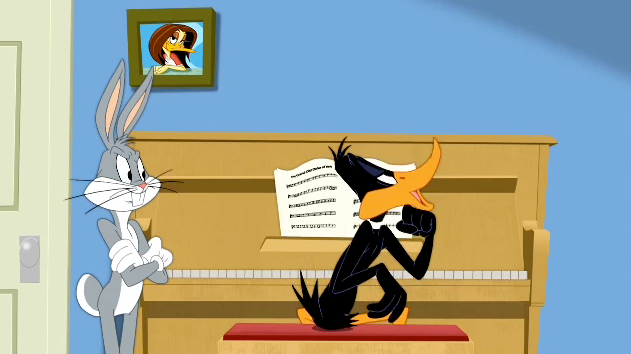 Later at Pizzarriba, Bugs notices the makeover Speedy has given to his restaurant, hoping to stay one step ahead of his competitor. Speedy then points out that Bugs was supposed to arrange live music, but because he was not actually listening, Speedy is in danger of losing customers if something is not done. Bugs tells Daffy that he will be performing on stage, much to Daffy's confusion, remembering the conversation he had with Bugs. Although Bugs had Daffy perform, Daffy has a different person perform, which is Granny's other piano student, Winnie Yang, who he had constantly competed with.The next day, Granny wears earplugs while Daffy continues playing atrociously to the point where Tweety willingly puts himself in Sylvester's mouth.